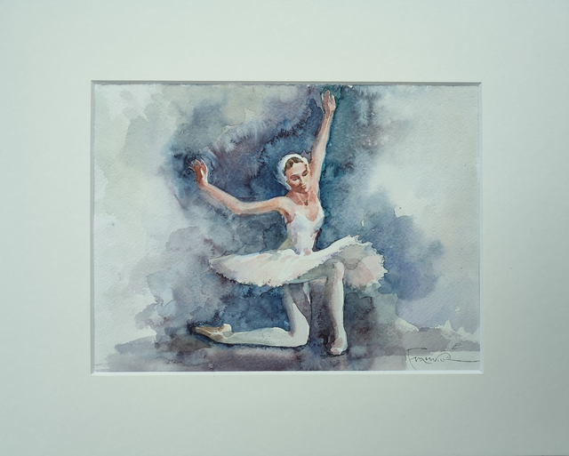 Baletnica, 28x35 (18x24 w świetle passe-partout) akwarela 2022