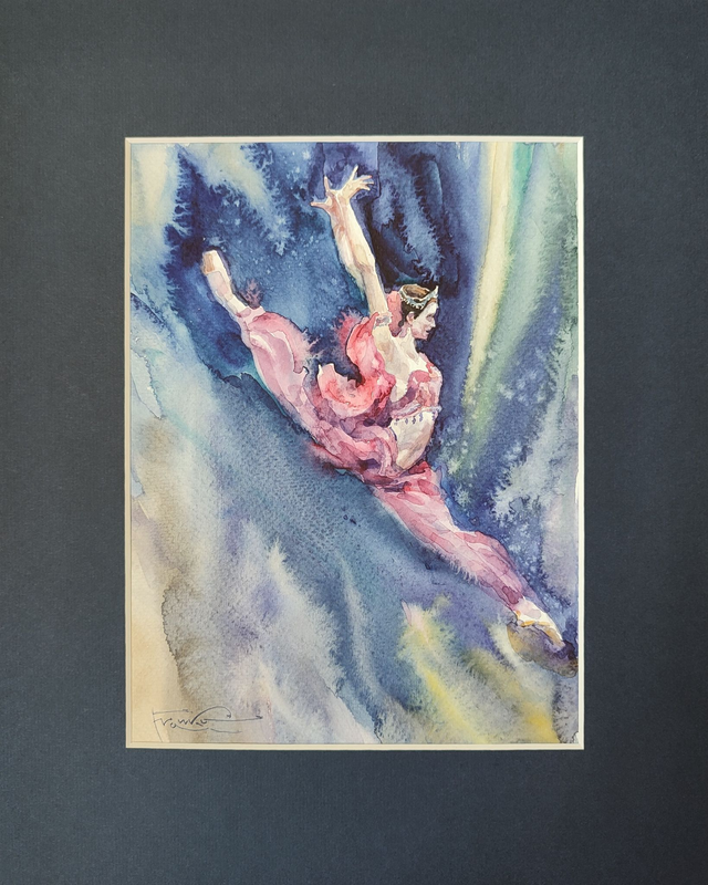 Baletnica, 35x28 (24x18 w świetle passe-partout) akwarela 2023