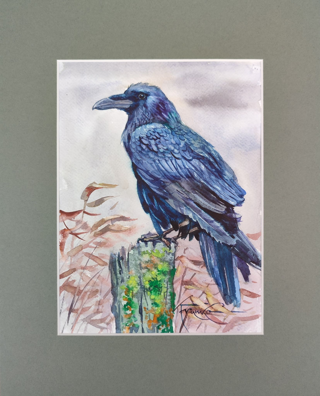 Kruk, 35x28 (24x18 w świetle passe-partout) akwarela 2024