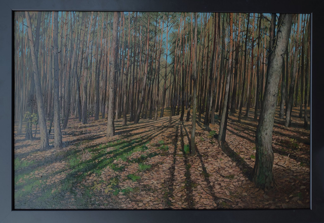 Las w Radomyślu - maj, 120x80 olej płótno 2024 oprawiony