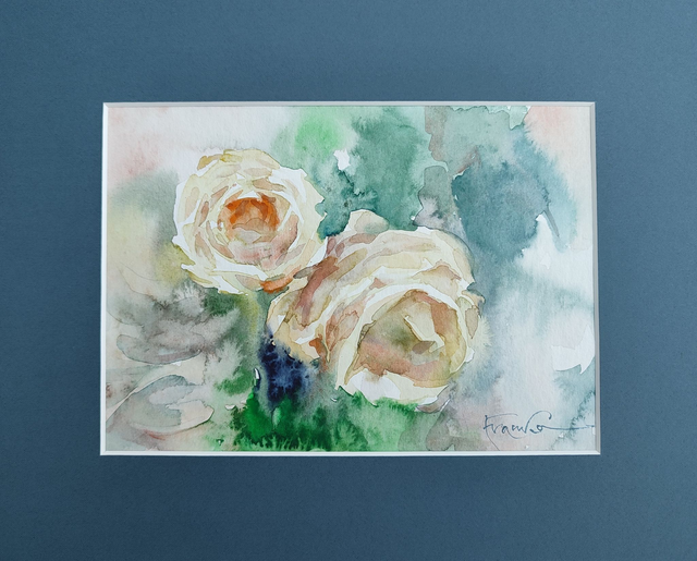 Róże, 24x30 (15x21 w świetle passe-partout) akwarela 2022