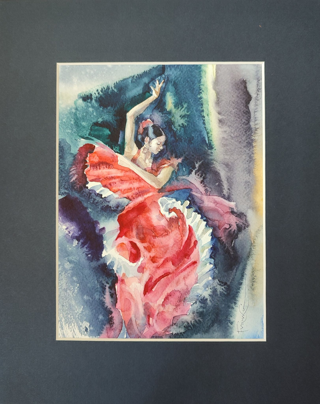 Tancerka, 35x28 (24x18 w świetle passe-partout) akwarela 2023