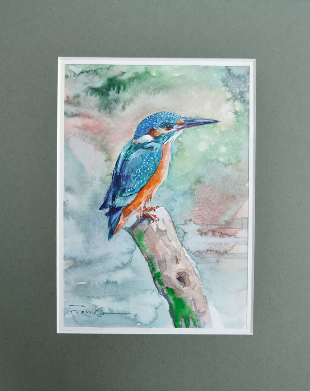 Zimorodek, 30x24 (21x15 w świetle passe-partout) akwarela 2022
